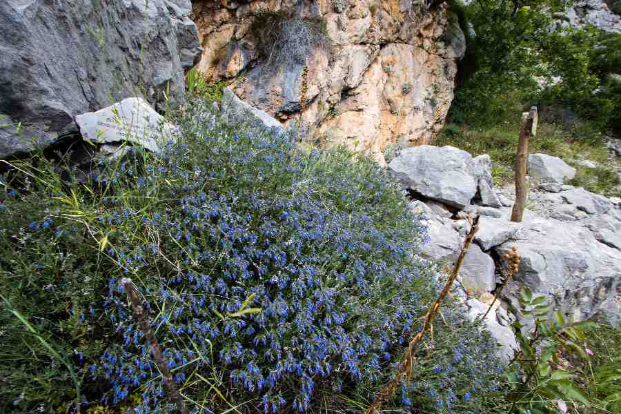 Hinter der Stadt geht's rasch hoch ins Biokovo Gebirge. Erster Anlaufpunkt war der kleine Botanische Garten beim Dorf Kotisina. Er bietet schöne Aussichten (und kostet keinen Eintritt), ist aber botanisch nicht wirklich überwältigend. Großteils wurden wohl viele ohnehin dort wachsende Pflanzen einfach beschriftet. Glockenblumen am Wegesrand