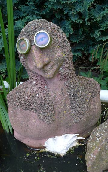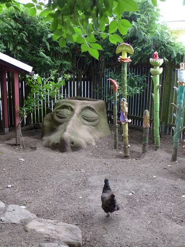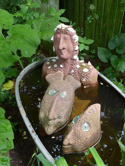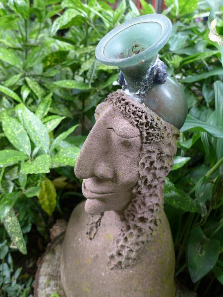 Ich hatte hier schon einmal von einer Gartenkünstlerin berichtet, die recht skurrile Kunstwerke herstellt, die geradezu "augenzwinkernde" Gnome sind und die mir zum Teil sehr gefallen. Gestern hatte die Künstlerin wieder einmal ihren sehr sehenswerten Garten geöffnet, aus dem ich ein paar ihrer Figuren zeigen möchte: