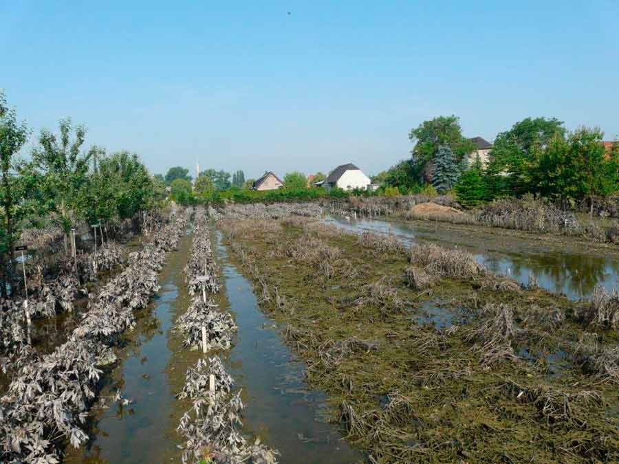 Pfingstrosengärtnerei Giessler in Sachsen-Anhalt im Hochwasser Nach der Wende bekam Wolfgang Giessler das Land seiner Väter zurück. Der gelernte Baumschuler und Gartenbauingenieur baute sich einen Landwirtschaftsbetrieb auf und begann, Pfingstrosen zu sammeln. Schon vor der Wende hatte er etwa tausend P. tenuifolias. Aus einem Hobby entwickelte sich im Laufe der Jahre die Gärtnerei Giessler. Wolfgang Giessler konnte dieses Jahr drei eigene ungewöhnliche Züchtungen bei der Amerikanischen Päoniengesellschaft registieren lassen. 'Little Odin'. eine schön dunkelrote Tenuifolia Hybride, 'Weisse Perle' eine noch nie dagewesene weisse Tenuifolia und die sensationelle Intersektionelle 'Yes we can', die als weltweit erste intersektionelle Hybride nicht durch menschliches Zutun, sondern auf natürliche Weise entstanden ist.Die Kunden der Gärtnerei schätzten an den Giesslerschen Pflanzen, dass sie kräftig loswuchsen und oft schon im ersten Pflanzjahr blühten. Giesslers verkauften nur eigene Produkte und handelten nicht mit Zukäufen. Alle verkaufsfähigen Pflanzen hatten schon wenigstens einmal in der Gärtnerei geblüht und waren auf Echtheit geprüft. Dass sie so gute Ware liefern konnten. lag an Giesslers selbst entwickelter Methode der Veredlung: er veredelt Augen auf P. delavayi-Wurzeln und hat sich diese Methode patentieren lassen.Am 10. Juni 2013 brach der Deich, der Groß-Rosenburg und umgebende Dörfer bisher vor Hochwasser schützte. Die Bevölkerung wurde zwangsweise evakuiert. Das Wasser verteilte sich im Winkel zwischen Elbe und Saale auf ca. 20 km Länge und Breite. In dem flachen Land kann das Wasser kaum wieder abfließen. Deshalb wurde der Deichbruch bei Rosenburg durch zwei Sprengungen vertieft und erweitert. Das Oberflächenwasser ist zwar teilweise abgeflossen, doch der Grundwasserspiegel ist derart hoch, dass die Felder eher einem Moor gleichen. Voraussichtlich können die Felder erst im Winter wieder mit Maschinen bearbeitet werden.In der Gärtnerei waren die Päonien etwa einen Meter hoch im Wasser fast 14 Tage lang. Das Laub der Päonien ist kaputt, ein Test, wie die Wurzeln aussehen, ergab, dass sie innen auch schon graubraun im Fäulnisstadium sind. Es ist ein Totalverlust abzusehen. Auch die Ernte in der Landwirtschaft fällt aus.Giesslers werden vorerst keine Bestellungen mehr ausführen können. Was so hoffnungsvoll begann, ist durch den Deichbruch verloren gegangen.Wolfgang Giessler und seine Familie verdienen es, dass sie für den Wiederanfang unsere Unterstützung bekommen. Im Moment bittet er um Samen von P. delavayi, damit er sich wieder Unterlagen für zukünftige Veredlungen heranziehen kann. Die Samen sollten sofort, wenn die Samenkapseln sich öffnen, geerntet und in Plastiktüten in einem mildfeuchtem Medium (Sand, Vermiculite, Kokoskrümel) an ihn geschickt werden. Auch für die Zusendung von Tenuifolia-Samen wäre er sehr dankbar. Die Adresse ist:Wolfgang GiesslerFabrikstr. 2739240 Groß Rosenburg ...