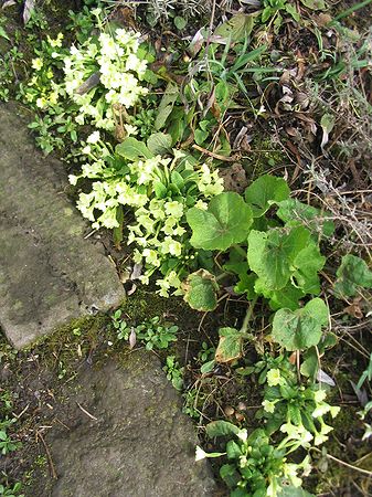 ...und das hundsgemeine Primelchen aus England, Primula vulgaris, das sich inzwischen überall im Garten ausgesamt hat und jetzt beginnt, auch die Nachbargärten zu erobern.