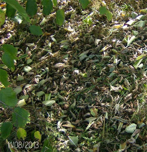 Unter den Haseln sammelt sich das Laub wie im Oktober...