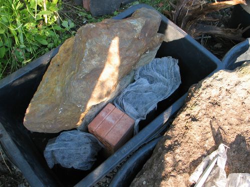 Der Unterbau für den Stein. Ich habe es mit einem Stapel aus Dachziegeln versucht aber das war eine Mausefalle.