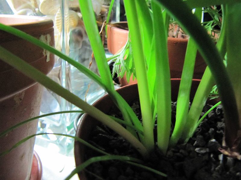 Das ist mir jetzt erst so richtig aufgefallen: eine (fast) immergrüne Zwiebelpflanze! Ist das überhaupt botanisch sinnvoll? Die Zwiebel dient doch dazu, einen Nahrungsspeicher anzulegen, damit die Pflanze schwierige klimatische Bedingungen unterirdisch überleben kann. Oder ist sie vielleicht nur bei uns immergrün, da die Trockenperioden fehlen?