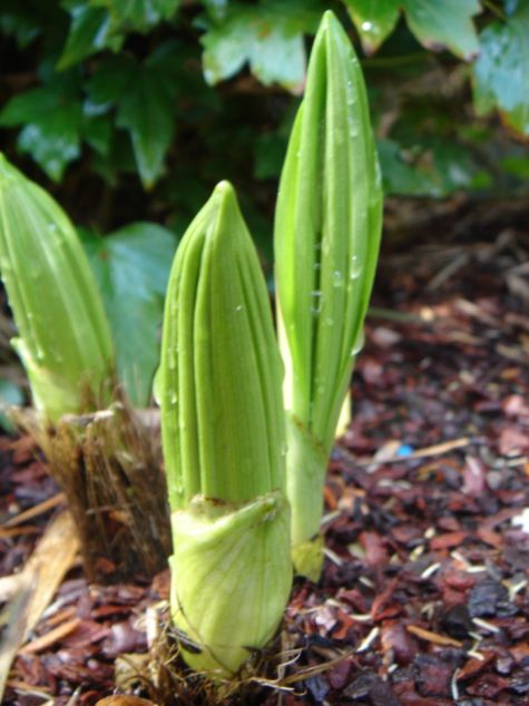Jetzt treiben auch die Veratrum aus. V.nigrum hat für meinen Geschmack später das schönste Blatt.