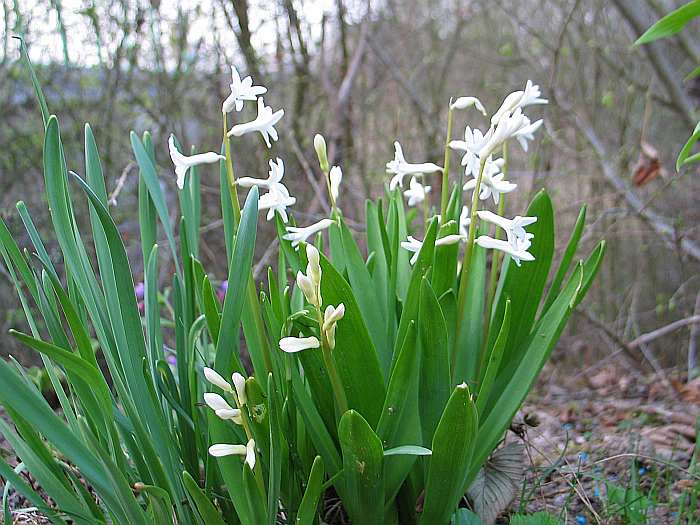 Hat jemand von euch die Wildhyazinthen. Vor vielen Jahren hab ich in einem verlassenen Garten in Frankreich Wildhyazinthen mitgenommen. Haben nicht geblüht nur grün aber es waren viele da und da hab ich ein paar Zwiebeln mitgenommen. Sahen wie normale hyazinthen aus, nur haben sie sich gut vegetativ vermehrt. Also die Horste waren ziemlich dicht. Bei mir haben sie sich fleißig vermehrt aber keine Samen angesetzt. Ich habe auch viele normale Hyazinthen im Garten die auch regelmäßig seit Jahrzehnten blühen. Die Franzosen sind aber viel zierlicher und vermehren sich vegetativ gut. Jetzt hab ich auf dem Bugagelände in Gera die Wildform gesehen. Sehen genau so aus wie meine. Aber meine sind nicht blau sondern weiß. Weil ich meinen Garten verlassen mußte hab ich alle verschenkt. Scheinbar hab ich aber ein paar hier an den Bahndamm gepflanzt. (Bin mir noch nicht ganz sicher, sollten die Tage aufblühen, dann mach ich ein Foto). Jetzt such ich jemand der einen anderen Klon hat, um zu tauschen. Vermehrung über Samen ist doch viel effektiver.