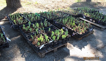 Und hier eine ganze Ladung frisch getopfte Rebloomer-Iris, die an einen Händler weitergehen: