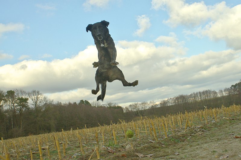 So sehen Hunde aus, die einem Ball hinterherspringen. Ich warte immer noch auf diesen Gesichtsausdruck von dir, wenn ich dich über ein Stöckchen springen lasse.
