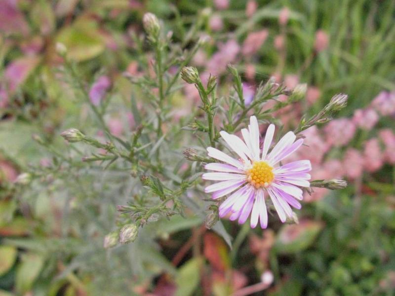 Hier einer der Gründe, warum ich künftig wohl mehr Asternsämlinge stehen lassen werde. :D60 cm hoch, kein Mehltau, die Form des Blütenstands erinnert ein wenig an Aster lateriflorus und die Blüten sind fast 4 cm breit.