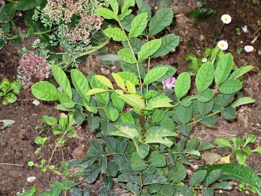 Ich halte das auch für eine Esche. Vor ein paar Tagen habe ich eine gejätet, die auch so aussah - auf sehr magerem, seit Jahrzehnten nicht gedüngten und recht trockenem Boden, wo sonst nur Teppichsedum darbt.Und das war nicht die erste. Und glaubt mir, das war eine Esche.