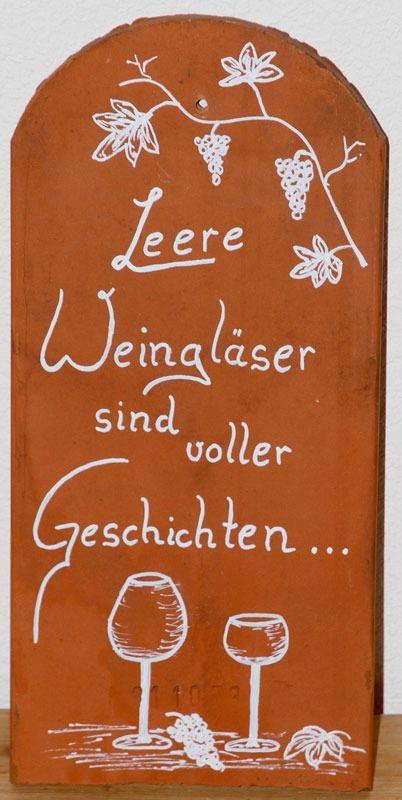 )Die misslungenen Exemplare habe ich wieder an meinen Bachlauf gelegt - die Schrift hält nach wie vor einwandfrei.Egtl hatte ich gehofft, dass sie verschwindet ;)Daher bin ich bei dem Ziegel guter Dinge.War aber ein Geschenk für eine Weinliebhaberin, die will den Ziegel wohl im Haus aufhängen.