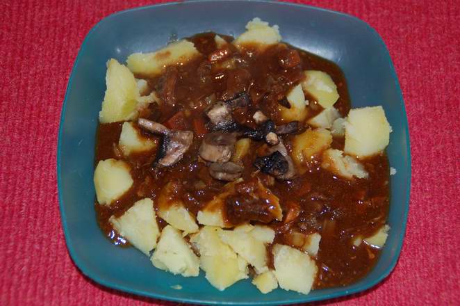 Hier gab es einen wunderbaren Rote-Bete-Eintopf und danach selbstgekaufte italienische Schokoladenmousse.
