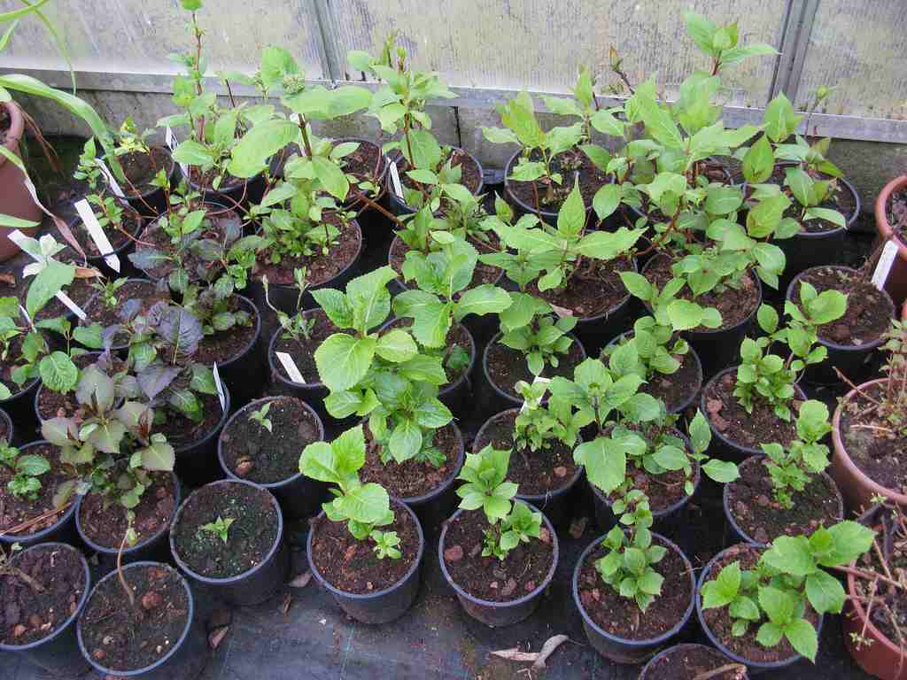 In meinem Garten und "auf Arbeit" habe ich zwar schon einige wenige Zufallssämlinge von Hortensien gefunden. Dies waren jedoch fast ausnamslos Hydrangea paniculata.Nachdem es im Netz nur sehr wenig Informationen über die generative Vermehrung von Hortensien gibt, habe ich es vor drei Jahren einfach einmal selbst versucht. Dann hat mir ein befreundeter Hortensienliebhaber, der über die Bucht Saatgut bestellt hat, einige überzählige Sämlinge geschenkt, die ich vorletztes Jahr pikiert und getopft habe.Nun habe ich 25 namenlose Hortensien in meinem Gewächshaus stehen und ich bin gespannt, was daraus wird. Die Muttersorten sind.Hydrangea macrophylla 'Lilacina',Hydrangea serrata 'Bluebird,'Hydrangea serrata 'Blue Deckle',Hydrangea macrophylla 'Selina' undHydrangea macrophylla 'Renate Steiniger'.Was sich als Vatersorte beteiligt haben mag? Ich weiß es nicht.Ich will auch gar nicht in die Riege der berühmten Hortensienzüchter aufsteigen. Mich interessiert einfach nur, wie groß die Variabilität und die die Unterschiede zu den Muttersorten sein mögen.Darüber möchte ich in loser Folge berichten.
