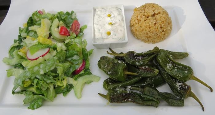Zwerggarten hat es bereits beantwortet  :DIch erwähne den "obligatorischen" Salat nicht immer, weil man den in der Regel gut erkennen kann.Heute gab es Bulgur mit Bratpaprika, Koriander-Sahne-Quark und Salat. Das Bild folgt morgen.
