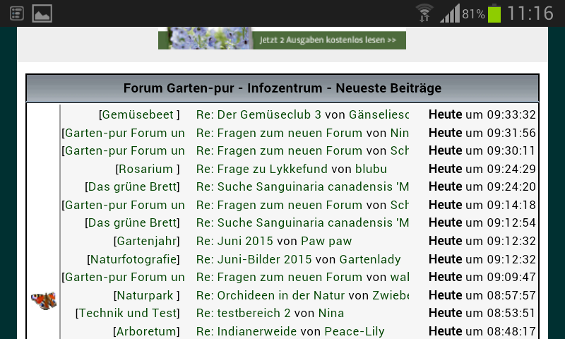 ;)was mich wundert ist, dass die alte software gefühlt problemlos eine anzeige auf dem eifon ermöglichte, oder waren das alles aufwendige anpassungen bzw. war vielleicht der vorteil, dass keine speziellen optimierungen für mobile geräte gemacht wurden? und mich wundert auch, dass neuere software nicht / kaum auf mobile nutzung ausgelegt ist; ich lese sonst immer nur von einem boomenden markt der mobilen geräte und einer enormen jährlichen zunahme des datenhungers der kundi... sowas muss sich doch auch in der softwarewelt niederschlagen? in der u- und s-bahn sitzen und stehen und überhaupt überall in stadt und land laufen jedenfalls nur noch mobile zombies herum, die ununterbrochen mobile anwendungen nutzen: apps, mobile versionen, whatever. :Pich hatte es an anderer stelle schon vermutet, dass garten-pur hier wohl eher ein zeichen dagegen setzen wollte — gebt es zu, das ist eine erziehungsmaßnahme!