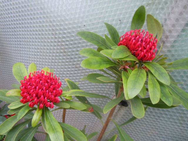 Meine Telopea hat dieses Jahr mit 4 Blüten geblüht, Überwinterung im GWH bei max. 10°