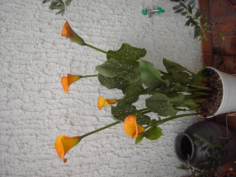 Ich glaube schon, das 5°C Überwinterungstemperatur gehen, dann muss das Substrat aber schon beim Einräumen so gut wie fast trocken sein. Nass bei dieser Kälte ins so kalte Quartier, da lachen sich bodenbürtige Pilze ins Fäustchen. Vielleicht finde ich noch ein altes Foto.Gute Idee, mit dem Thread, Amur! :DIm Moment blüht hier die Calla 'Mango'. Hat auch schon ein paar Jährchen auf dem Buckel.Ups, wieso hat sich das Bild gedreht?