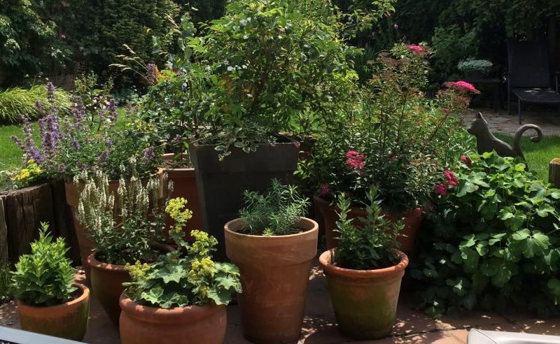 So sieht der schönste Teil meines Kübelgartens aus. Die andere Seite muss noch aufholen.