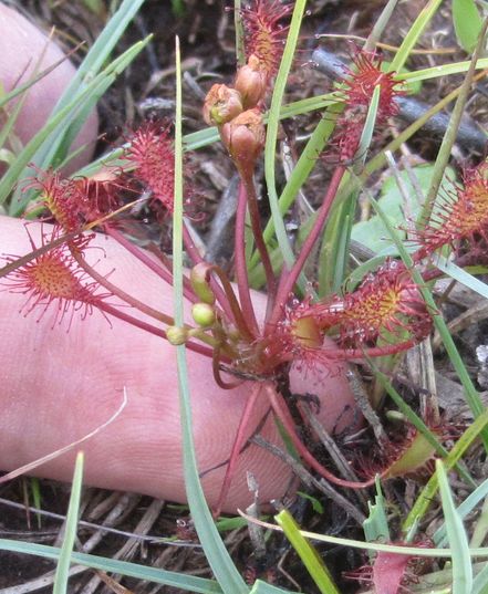 Du meinst die Rosette war unten gestielt? Die Wurzel als Stängel? ???Sonnentau, Rundblättriger und Mittlerer sind an geeigneten Standorten oft sehr häufig, scheinen sich gut auszusäen....An zwei Standorten wurden es aber über 6 cm Rosetten. Ich habe noch nie so große kräftige Pflanzen gesehen. An dem einen Standort waren sie öfter gestielt wie kleine Palmen und wuchsen zum Teil an ziemlich trockenen Stellen die nie überschwemmt werden.