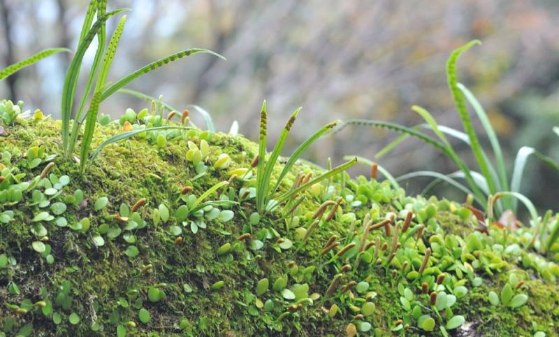 Heute kommt das Bilderrätsel aus Japan. Auf dem Foto sind zwei Farnarten zu erkennen: Einer hat pfennigrunde Blätter von etwa 1 cm Durchmesser. Er wächst in der Mossschicht auf Baumrinde und ich habe ihn in Japan relativ selten gefunden, allerdings waren alle Fundorte südlich von Nagoya. Weiter nördlich scheint es im Winter zu kalt zu werden.Der zweite Farn hat eine Blattlänge von bis zu 20 cm (üblicherweise aber um die 10-15 cm), die Blattbreite ist 5-6 mm. Das Blatt ist ledrig und oberseits völlig glatt. Er findet sich in Japan im Süden bis etwa Höhe Tokyo und wächst nicht nur in feuchten Moospolstern, sondern auch in Mauerritzen und in Rindenfurchen, teilweise an bemerkenswert trockenen Standorten. Obwohl er robust erscheint und in Japan wirklich häufig ist, habe ich ihn bisher zuhause nicht am Leben halten können. Weder auf der Fensterbank, noch im Gewächshaus.Ich weiß, dass ich eigentlich viel bessere Aufnahmen, vor allem der Sporenblätter bräuchte, aber die Wuchsformen sind in Japan ziemlich außergewöhnlich und sollten dem einen oder anderen Experten vielleicht einen Hinweis zumindest auf die Gattung geben. Wenn ich dann noch ein paar Tipps für die erfolgreiche Haltung bekomme, wäre ich natürlich zutiefst beeindruckt...