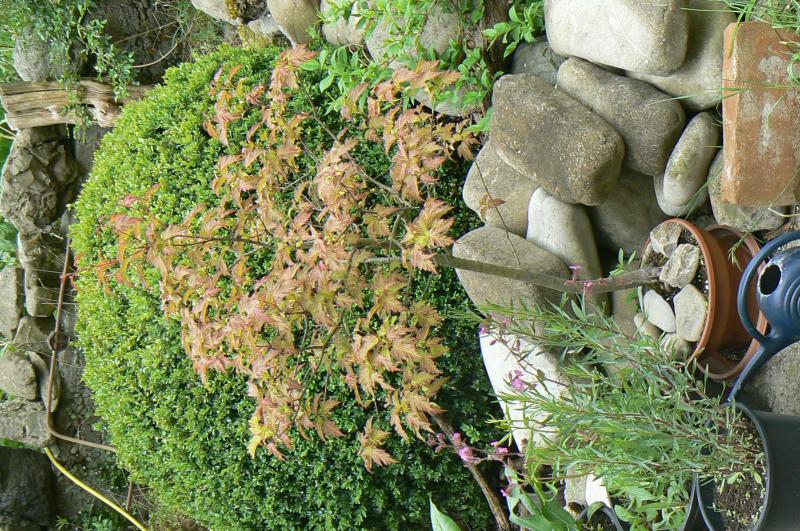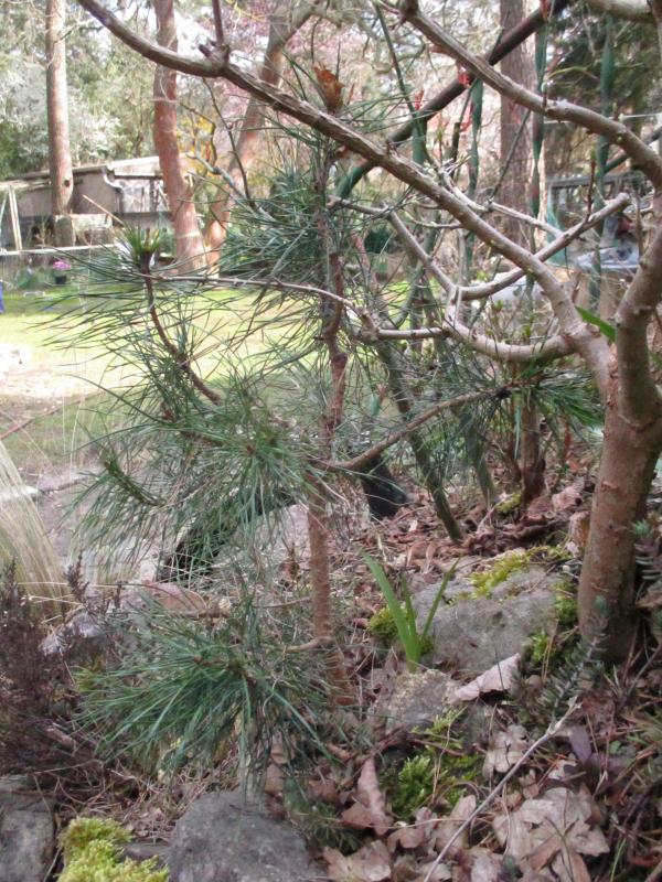 Direkt daneben hat sich vor ein paar Jahren eine Kiefer eingefunden (wo nicht in meinem Garten ::)) und durfte bleiben. Der Maitrieb wird ausgeknipst oder halbiert.