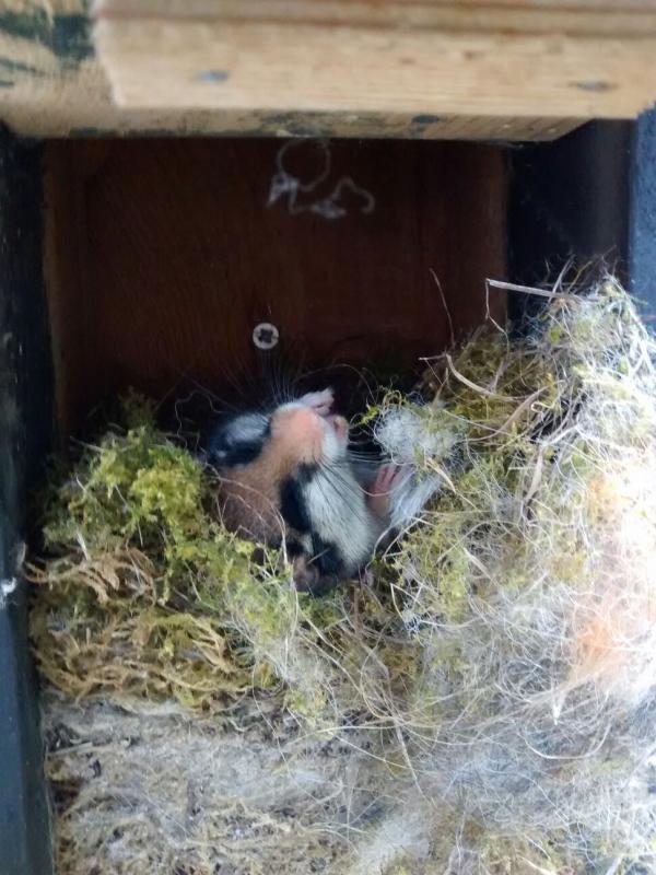 dieser süße gartenschläfer hat den nistkasten besetzt und ließ sich nicht stören. geschnarcht hat er nicht.