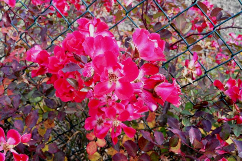 sieht mir ziemlich nach Red Meidiland aus, die macht auch oft so schönes Herbstlaub und Hagebutten.