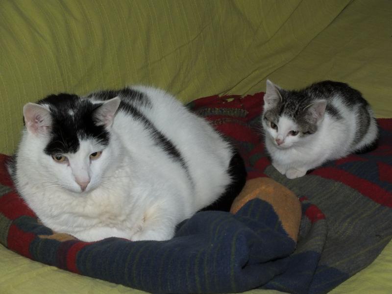 Was sind das Wonneproppen! Zeig Deinem Kater doch mal die Kleinen, dann siehst Du wie er auf sie reagiert. Klar guckt er erstmal skeptisch. Stell Dir mal vor, Deine Eltern kämen an, hätten einen Zwilling dabei und würden behaupten, Du müßtest Dich um Deine Kinder kümmern. *g*Hast Du eigentlich gemerkt, dass sowohl Kater (wie heißt er eigentlich), als auch die Babies fast die gleiche Zeichnung auf er Stirn haben?Ach ja, und herzlich Willkommen sage ich natürlich auch. Und Glückwunsch zu Valentin und Valentina *g*Frag lieber, wie oft Du mit ihnen spielen darfst *g*. Ideal wäre es aber, wenn Du eine weitere Strickjacke anziehst und sie einfach bei Dir an die Brust legst. Nun ja, nicht wörtlich natürlich!