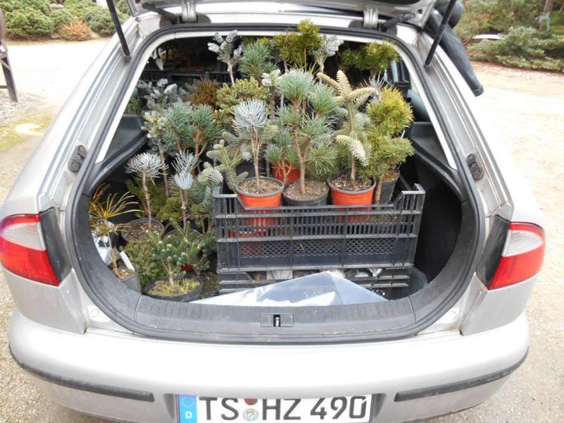 Ich war letztes Wochenende in Budweis/Tschechien und habe dort einen Spezialbetrieb für sog. "Hexenbesen" Zwerg-Koniferen besucht. Selten erlebt man einen Betrieb, der mit solch Liebe und Leidenschaft geführt wird wie von dem Chef Miroslav Malik. Die Chemie stimmte sofort und das "Sie" wurde gleich am Anfang abgelegt- und eingekauft wurde deutlich mehr als geplant. Unser kleiner Seat Leon war proppenvoll- ich muss unbedingt wieder im Sommer dorthin wenn alles grünt und lebt- obwohl es jetzt schon ein unvergessliches Erlebnis war-