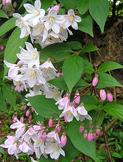 Deutzie mit unzähligen Arten und Sorten. Es könnte Deutzia x rosea sein.