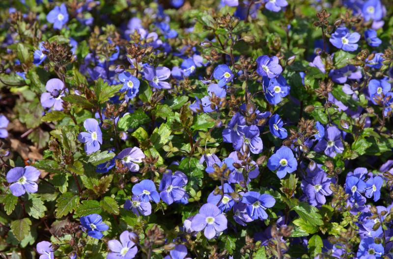 Bodendeckend, wintergrün und bei mir sehr unempfindlich: Veronica peduncularis