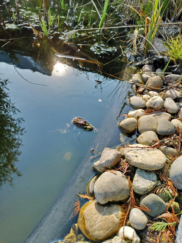 Man soll sie nicht vermenschlichen, aber ich mache das jetzt auchvielleicht ist Euer Fröschlein abgewandert, weil es ihm "zu bunt" wurde und jetzt verhält es sich ruhig, damit die anderen nicht auch in die ruhige Oase kommen