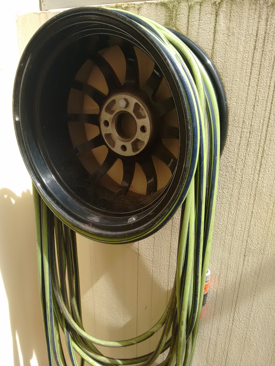 Dafür eignen sich Autofelgen prima. (Zumindest in der Scheune, wo ich die Schläuche über Winter hängen habe und wo die sich ergebende eigenwillige Optik nicht störtDas einzige, was ich mir vielleicht nochmal zulegen werde, ist so eine Wandhalterung, auf die man den Schlauch hängen kann.