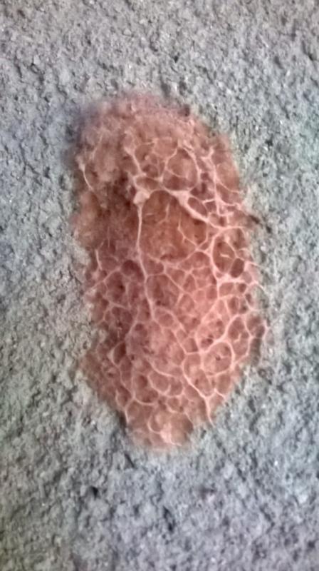 Die Kosistenz des Gebildes ist weich, trocken, spinnwebartig, nachgiebig. Wie ein staubiges Spinnennetz auf einer Baustelle.