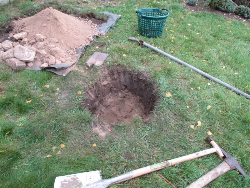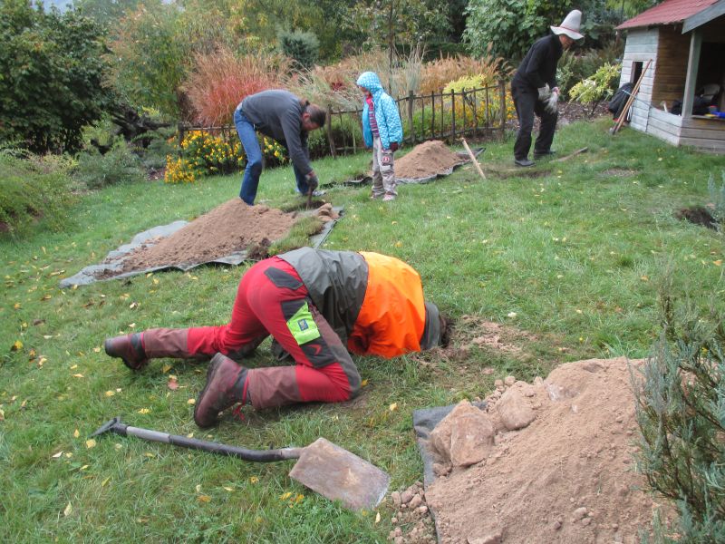 Der Tag begann regnerisch und ich war um 10:00 erstmal alleine zur Stelle und habe damit angefangen das erste Loch zu graben.