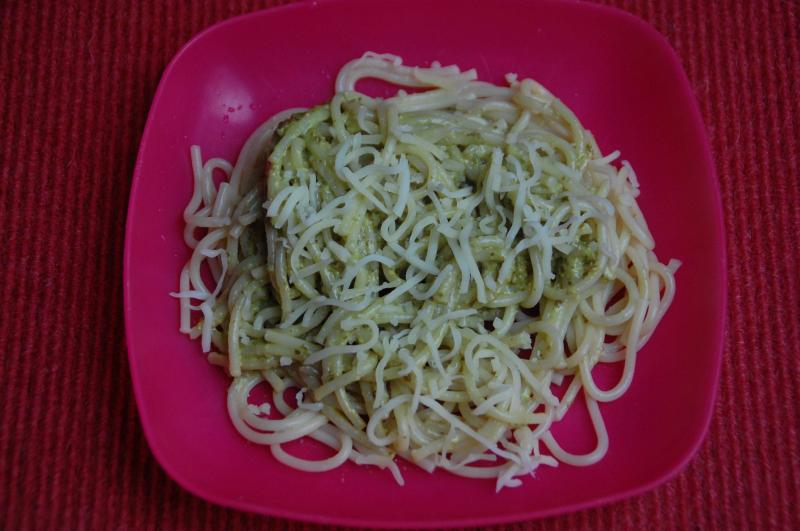 Hier gabs schnelle Nudeln mit Tomatensoße und Pecorino.