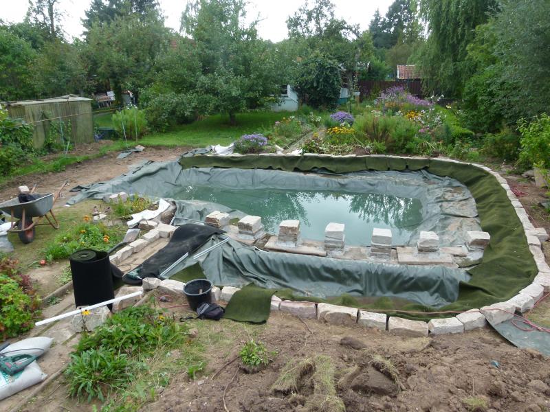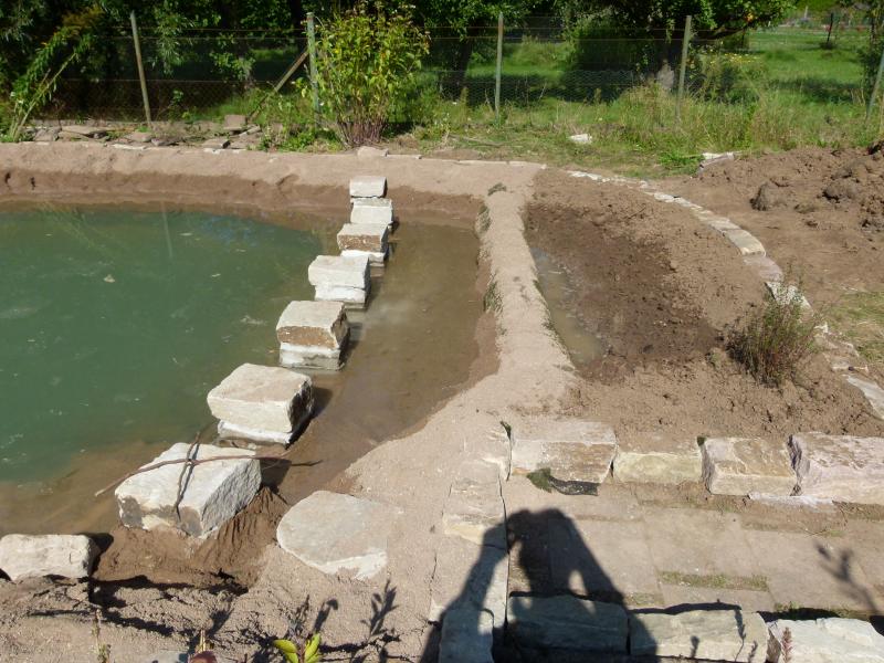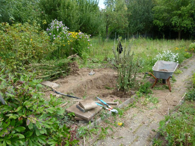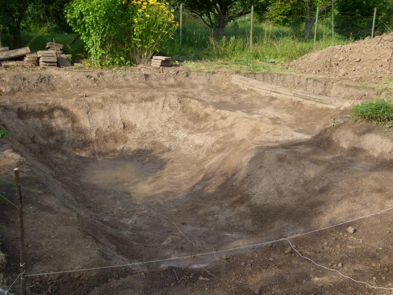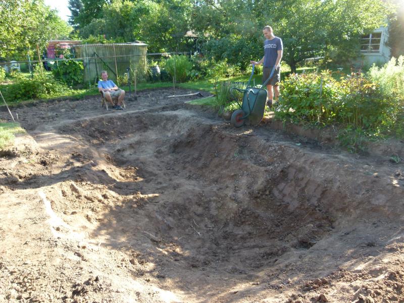 Ok, Senkgarten gestorben. Dafür konnte dann aber der Teich etwas größer werden, die Zerstörung des grünen Idylls nimmt ihren Lauf: