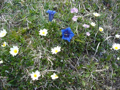 Hier die Primel neben Enzian. Von den weissen Blümchen kenne ich den Namen nicht.