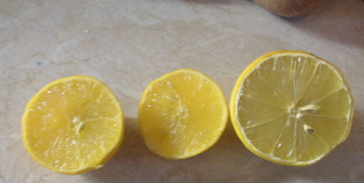 hier noch ein Bild,rechts zum Vergleich normale Zitrone