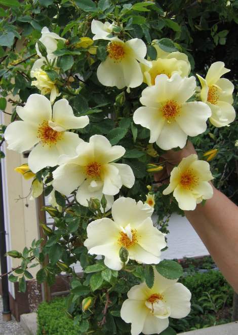 Hallo Sabine,in eurer kalten Gegend würde Mermaid niemals so hoch werden! Die würde ständig zurück frieren.Es ist eine moderne Züchtung, die ich bei uns sehr viel in öffentlichen Gärten und Straßenbegleitgrün, ebenso in Gärten sehe. In Augsburg ist sie z.B. neben dem Städtischen Theater gepflanzt worden. Ich freue mich jedesmal wenn ich im Frühjahr diese als erste Rose blühen sehe. Mein GG hat schon im Gartenbauamt nach dem Namen dieser Rosen nachgefragt (es blüht wenig später noch eine rosafarbene). Als Antwort bekam er so etwas wie: Da hätten wir viel zu tun wenn wir uns noch um die NAMEN kümmern müssten. Boing!Liebe GrüßeChristine