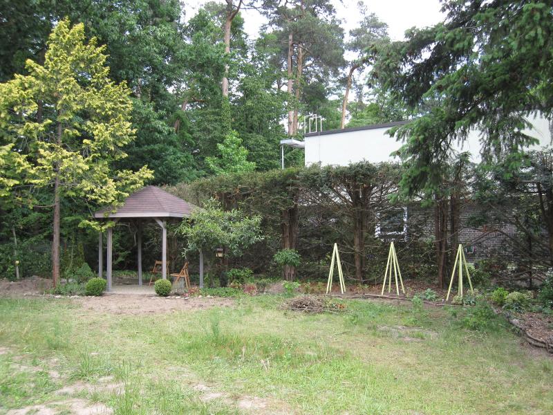 Die Anschaffung des Pavillons war mehr oder weniger ein Unfall und er stand erst mal zwei Jahre im Keller tierisch im Weg rum. Da musste er also weg und ich denke, wir haben den richtigen Platz ausgewählt. Ein nettes Plätzen, vor allem weil abends gegen 18:00 Uhr die Sonne reinscheint, man sich also nach einem reizüberfluteten Arbeitstag dort in die Sonne zurückziehen und sich etwas aufräumen kann. :D [/OT]