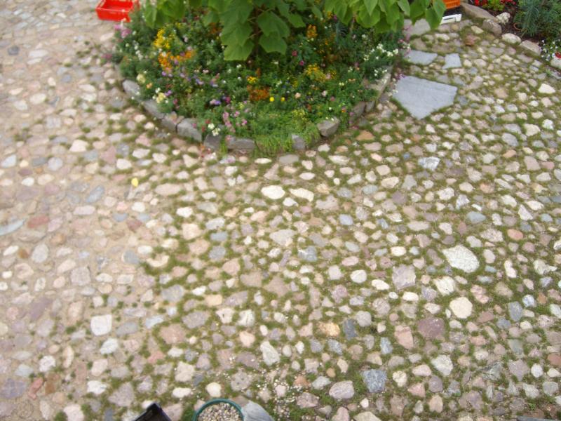 Der ganze Hof ist so angelegt, daß er das auch darf (hatte nur nicht so schnell damit gerechnet) Der Standort ist relativ an der höchsten Stelle des Hofes, so daß eine Wasserführung gewährleistet bleibt und das umliegende Pflaster besteht aus groben Feldsteinen. Es ergibt sich somit keine Beeinträchtigung der Nutzung, auch wenn es ein paar Anhebungen gibt.