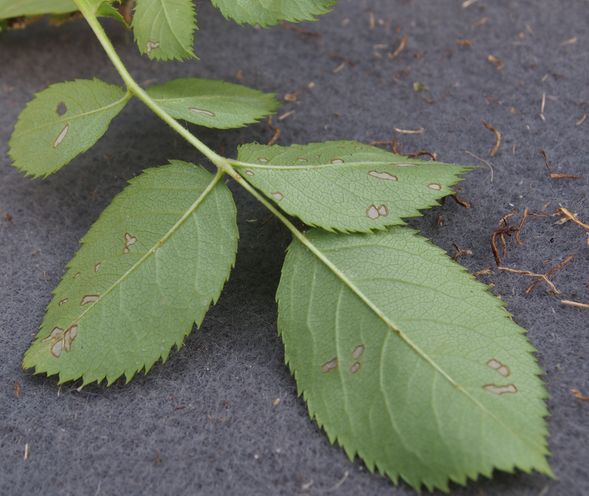 Weil aber an fast jeder Rose in der Nachbarschaft solche Schäden zu sehen sind kann das Ding ja nicht allzu selten sein. Diese durchscheinenden Fensterlöcher die die obere Epidermis übrig lassen sind schon seltsam.