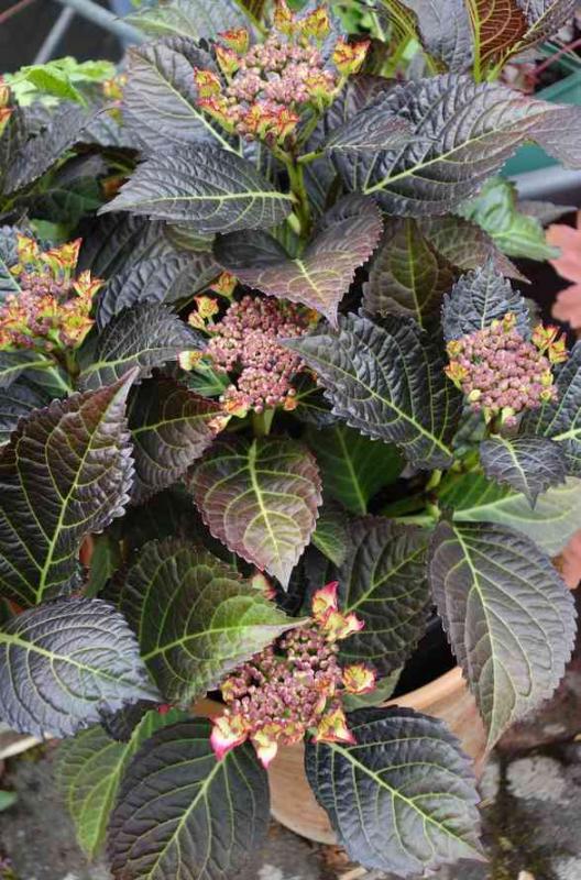 Auch Hydrangea 'Dark Angel' könnte passen.