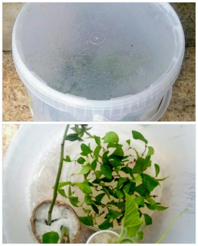 Hallo, gestern habe ich ein neues kleines Experiment gestartet. Ich habe mir C. mas-hölzer besorgt und sie in Superabsorber (SAP) gesteckt. Für den nötigen hormonellen Anreiz, habe ich sie mit Clonex versetzt. Für eine gespante Luft, wurde die Schale mit den Stecklingen in einem transparentem Kunststoffeimer gegeben.