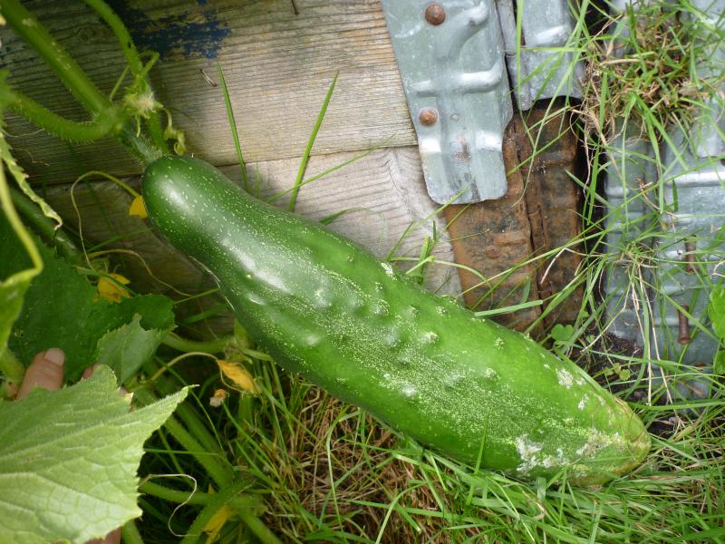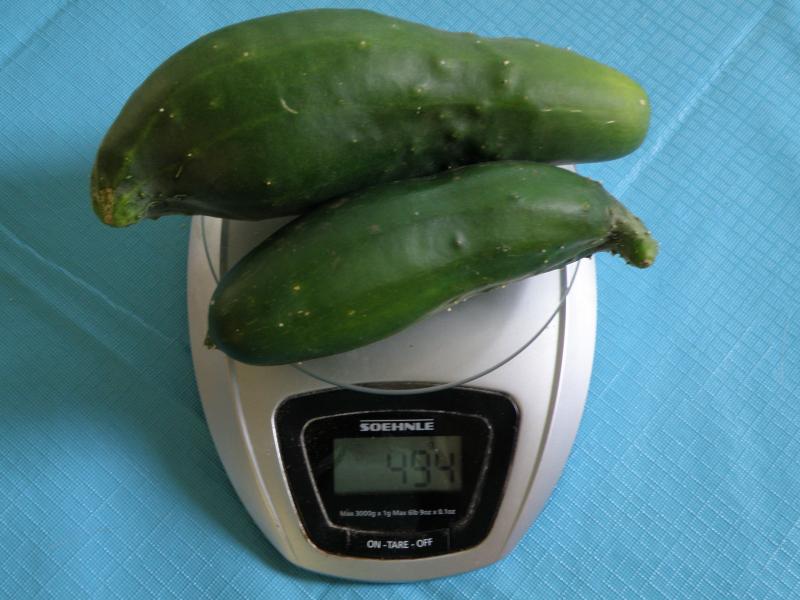 Hausgurke Leni kam von M. Hahm und hat ganz lange schlanke Salatgurken mit Stacheln.