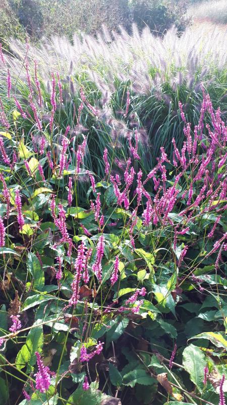War das leuchtend Dunkle im Hausgarten vorn auf dem foto auch ein Knöterich??