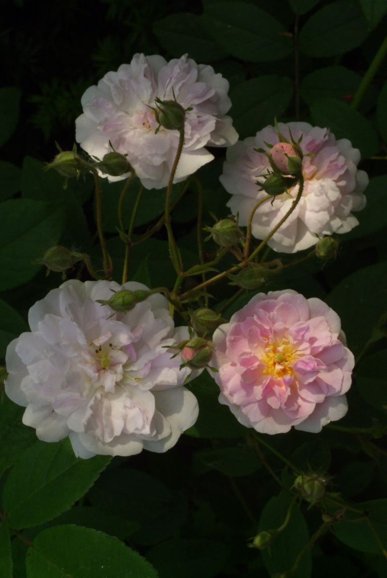 Eigentlich bin ich ja eher passionierter Staudengärtner und habe mit den Rosen nur am Rande zu tun, etwa in Form von kleineren Alba-Sorten als Gerüstbildner im halbsonnigen Staudenbeet. Weil jetzt aber gerade die Rosen blühen, hat mich meine Tochter gedrängt, doch mal was darüber ins Forum zu stellen. Ich hoffe, es langweilt Euch Experten nicht so sehr.
