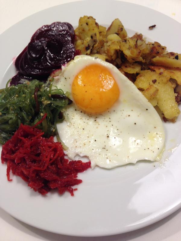 Und gerade Bratkartoffeln mit Spiegelei und der letzten roten bete aus dem Garten