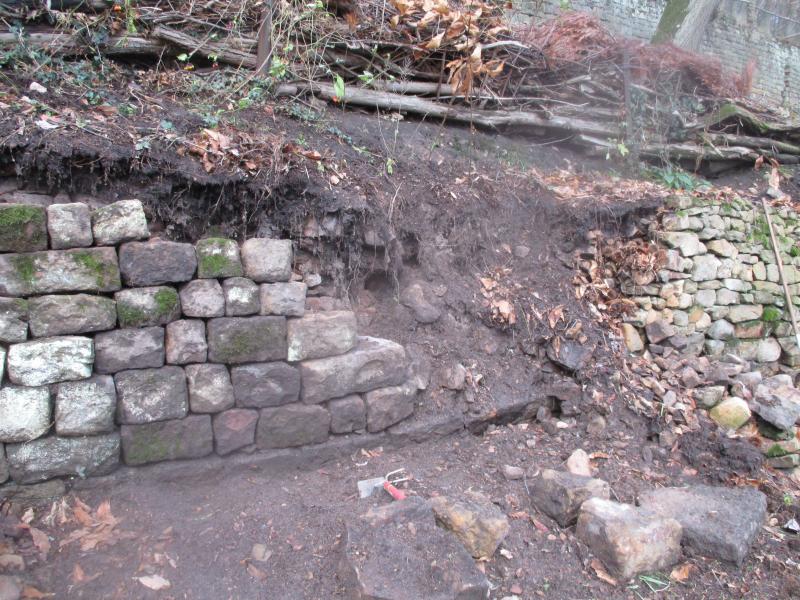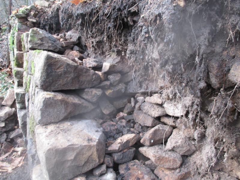 Die milde Witterung der vegangenen Tage habe ich genutzt, um ein Stück Mauer in der Länge von ca Metern und der Höhe von ca. 1,5 Metern wieder aufzusetzen.