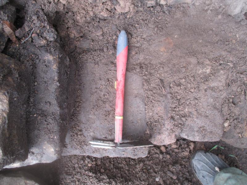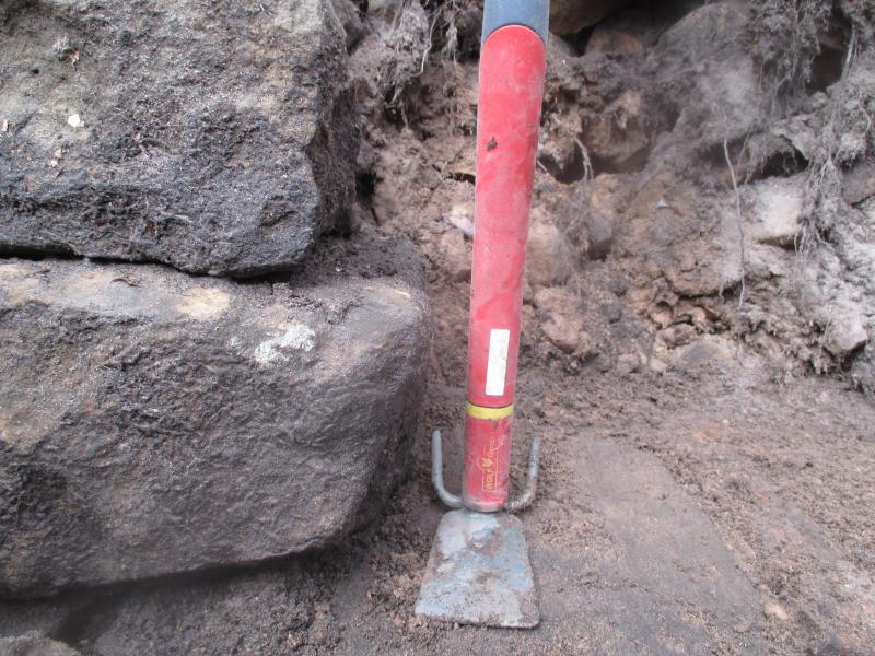 Aber es liegt noch gerutschte Erde und lockere Steine in der Baustelle.
